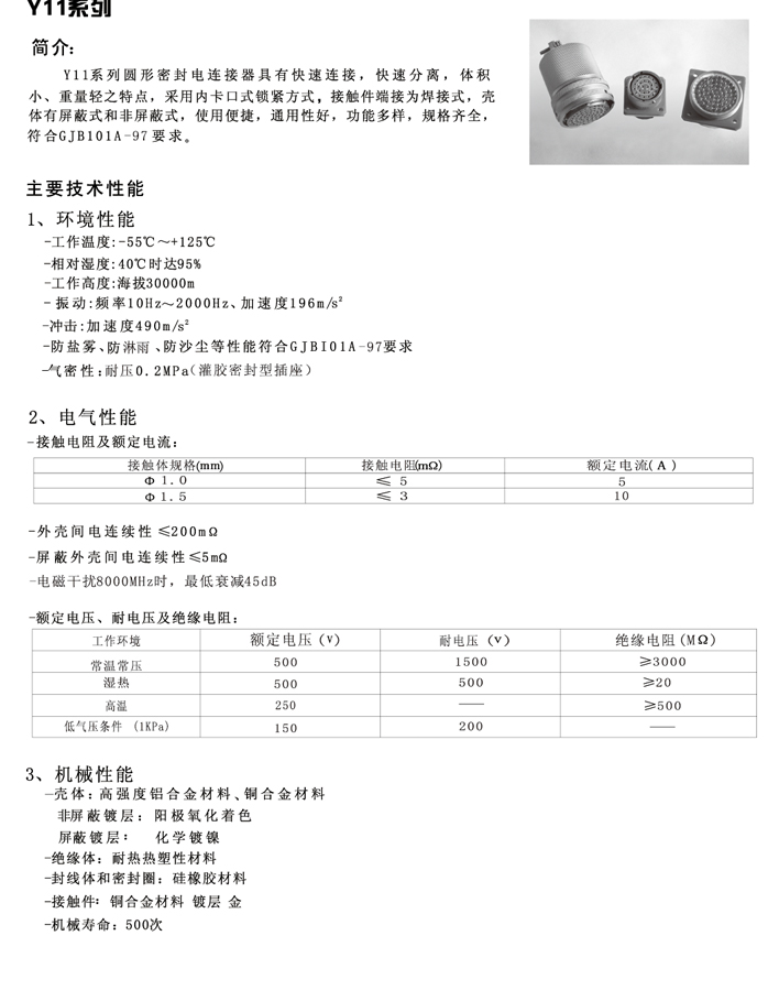Y11系列圓形電連接器
